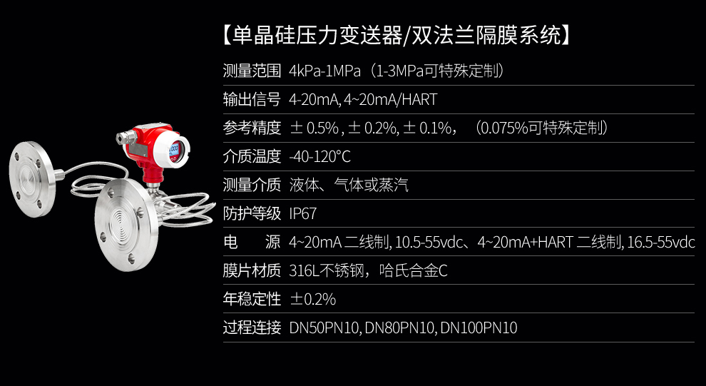 SIN-2051DP雙法蘭差壓液位變送器是一種為避免被測介質直接作用于變送器的遠傳隔離膜片接觸而采用的差壓式變送器(結構測量法)。