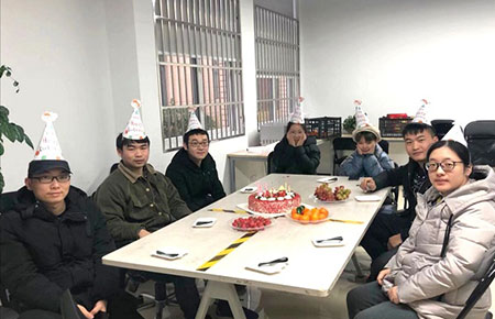 蕭山生產(chǎn)基地,壽星們也是歡聲笑語(yǔ)不斷,分享著蛋糕、水果,玩著小游戲,全程緊張且驚喜。公司同事們也紛紛獻(xiàn)上了自己的生日祝福。