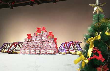 隨后,聯(lián)測(cè)搖身一變,成為圣誕老人,為大家一一送上了精美的圣誕禮物,當(dāng)大家收到平安果與滿(mǎn)滿(mǎn)一整袋巧克力時(shí),開(kāi)心的像個(gè)孩子。