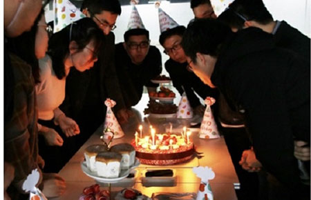 十幾位壽星歡聚在公司總部報(bào)告廳,大家圍繞在甜甜的蛋糕邊上,一起吹蠟燭,許心愿,每個(gè)壽星的臉上洋溢著幸福的味道。