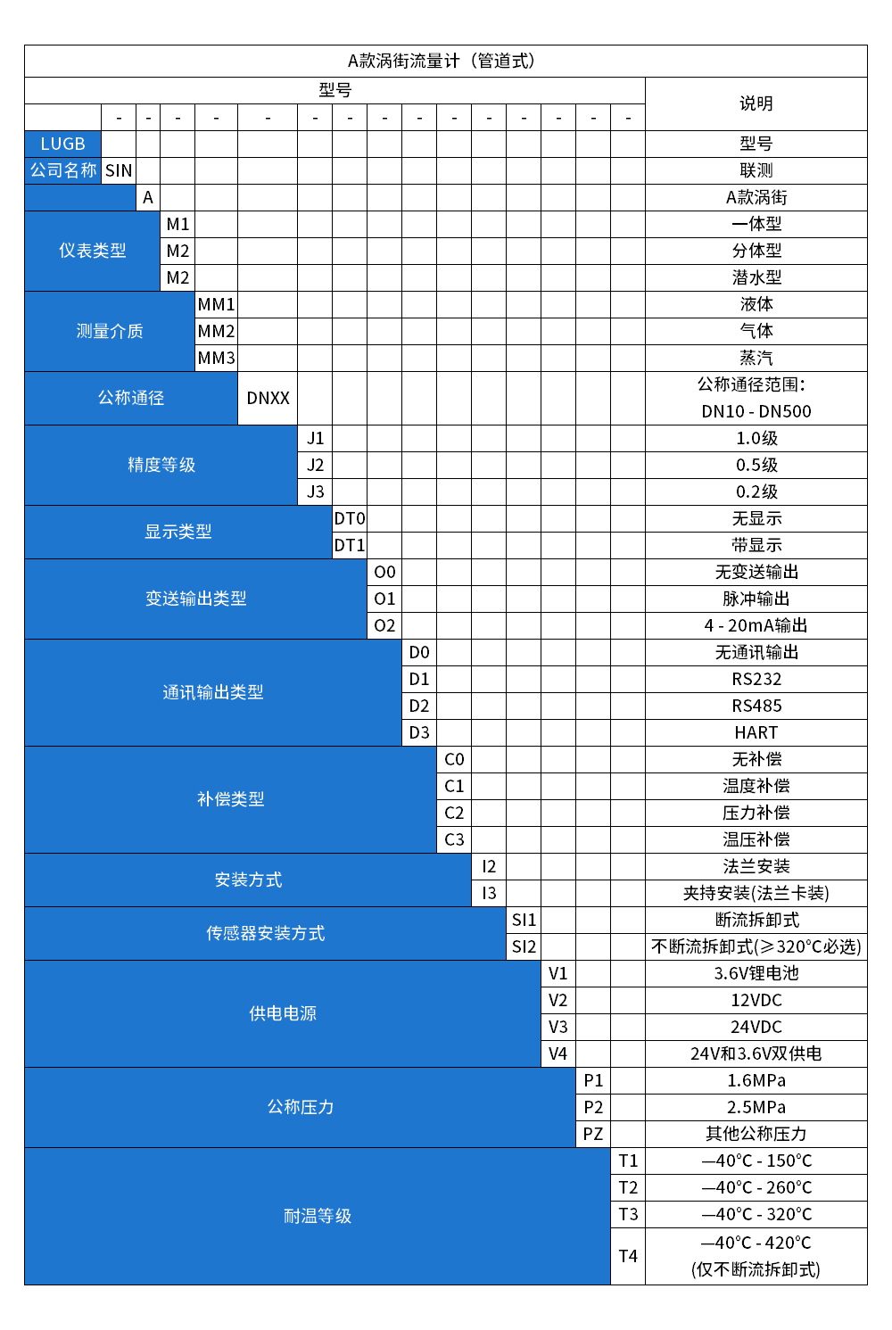 聯測_LUGB-SIN-A_渦街流量計_耐高溫抗震_溫壓補償_負40-420度_類別:渦街流量計